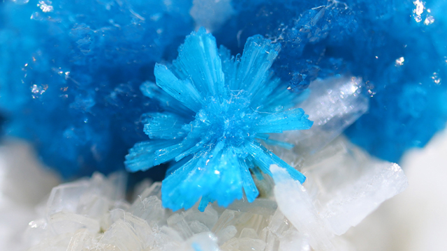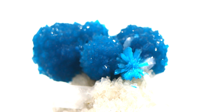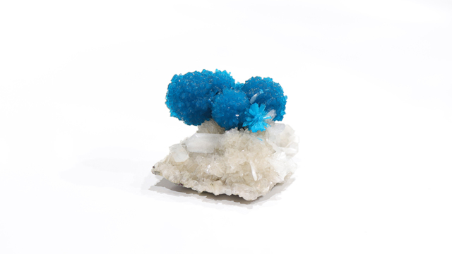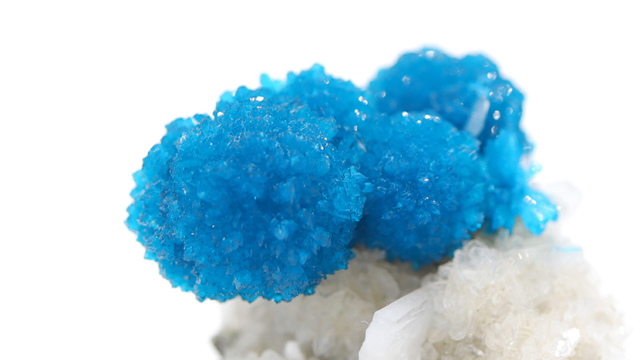 鮮やかな青色とまるで金平糖のようなかわいらしい形から、パワーストーンコレクターに愛好されます。カバンサイトの主成分は、バナジウム、カルシウム、シリコンであり、この発色はバナジウムによるもので、インドのプーナから産出します。プーナはバナジウムの濃度が高い土地のために、鮮やかなコバルトブルーの発色が濃いものが産出されます。